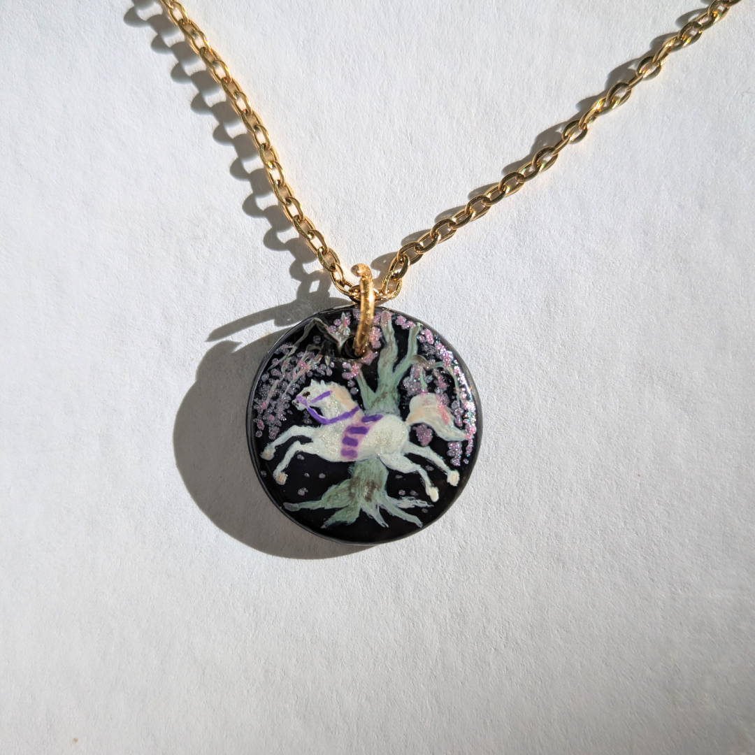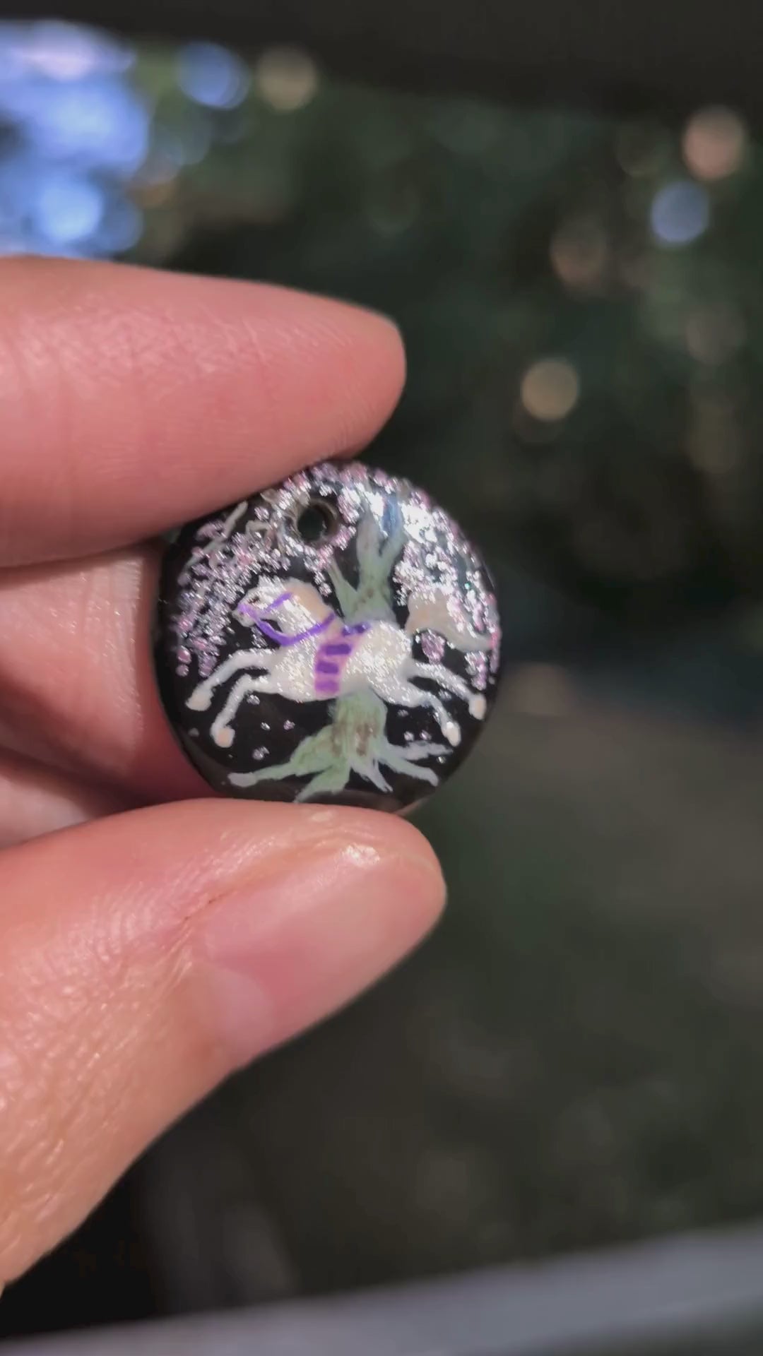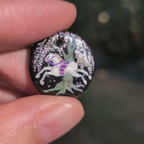 Chaque pièce étant peinte à la main, de subtiles variations de couleur et de détails rendent chaque pendentif unique et peuvent légèrement différer des photos.